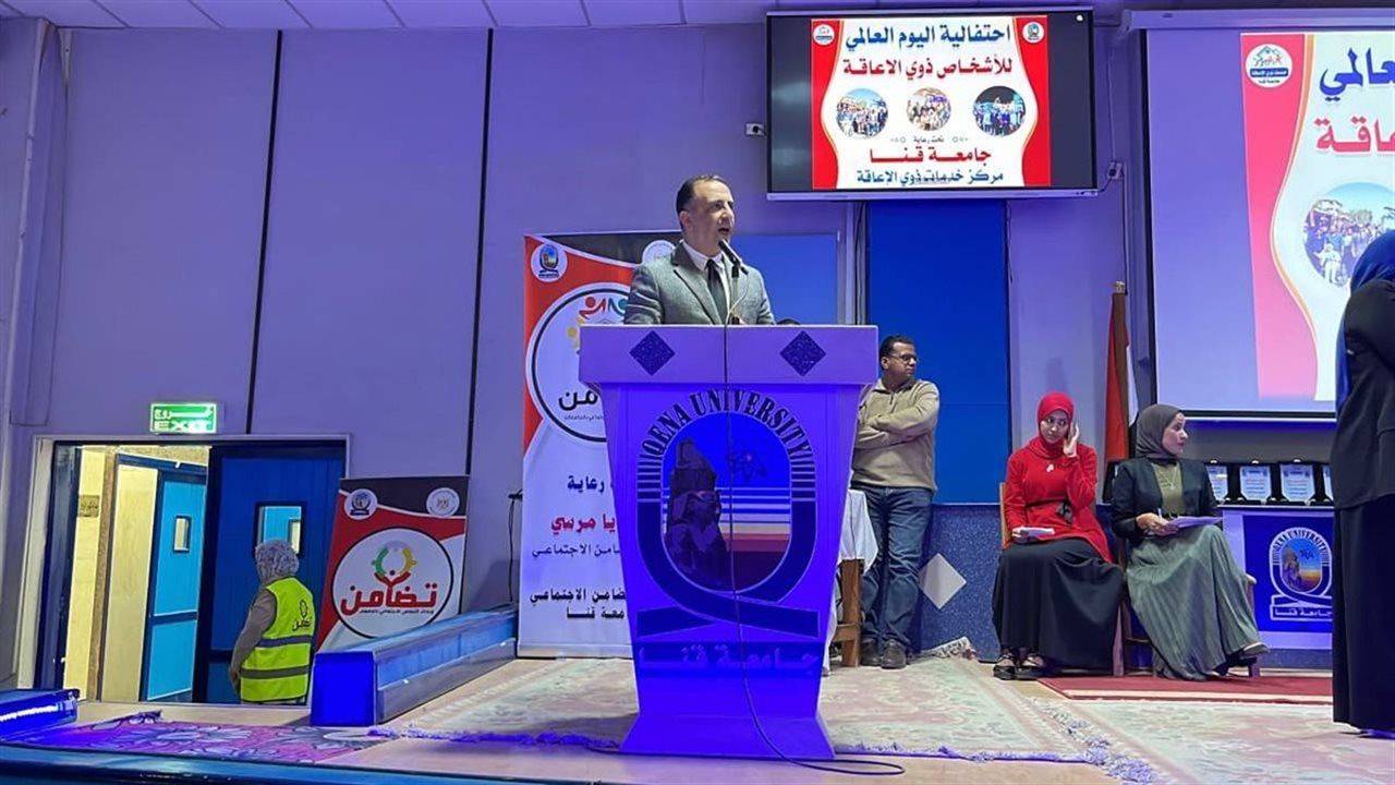شارك الدكتور محمد العقبي، مساعد وزيرة التضامن الاجتماعي، للاتصال الاستراتيجي والمشرف العام على مشروع وحدات التضامن الاجتماعي في احتفالية جامعة قنا باليوم العالمي للأشخاص ذوي الإعاقة.