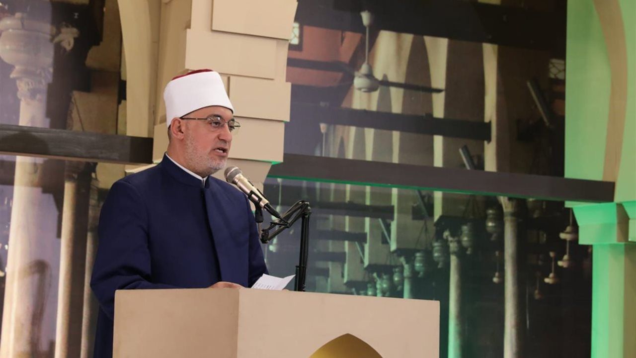 وأوضح مفتي الجمهورية أن هذه الاحتفالية تسهم في استدعاء القدوة الصالحة، مؤكدًا أن الأمم التي تعتز برموزها وقدواتها وتستحضر نماذجها المضيئة، تكون أقدر على النهوض والمشاركة الفاعلة في مسيرة الحضارة الإنسانية، مستشهدًا بقوله تعالى: ﴿لقد كان لكم في رسول الله أسوة حسنة﴾، مشيرًا إلى أن الاقتداء الحقيقي برسول الله صلى الله عليه وسلم يتحقق باتباع هديه والأخذ عن العلماء الربانيين الذين ساروا على دربه وحافظوا على مسلكه.