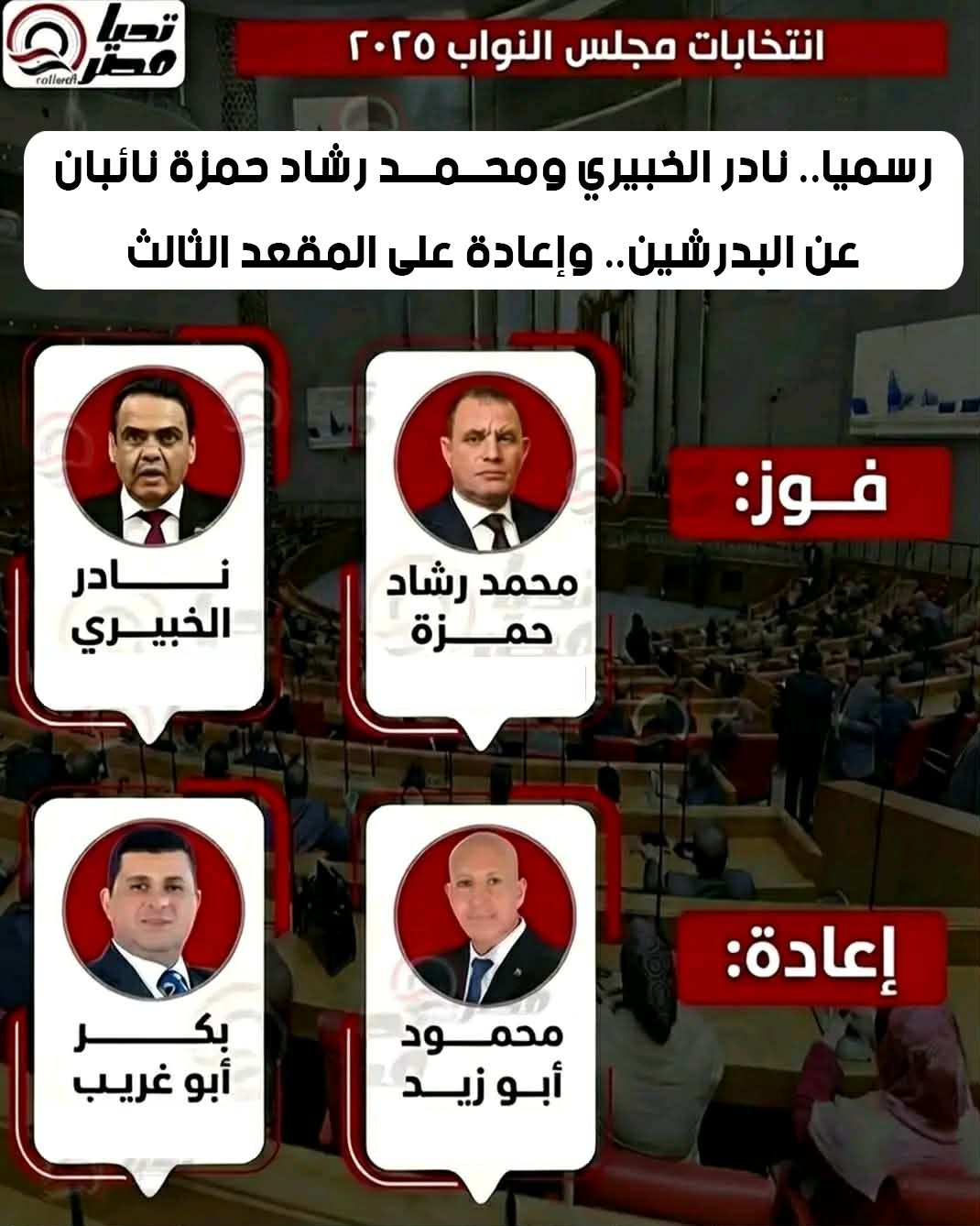 رسميا.. نادر الخبير ومحمد رشاد حمزة نائبات عن البدرشين