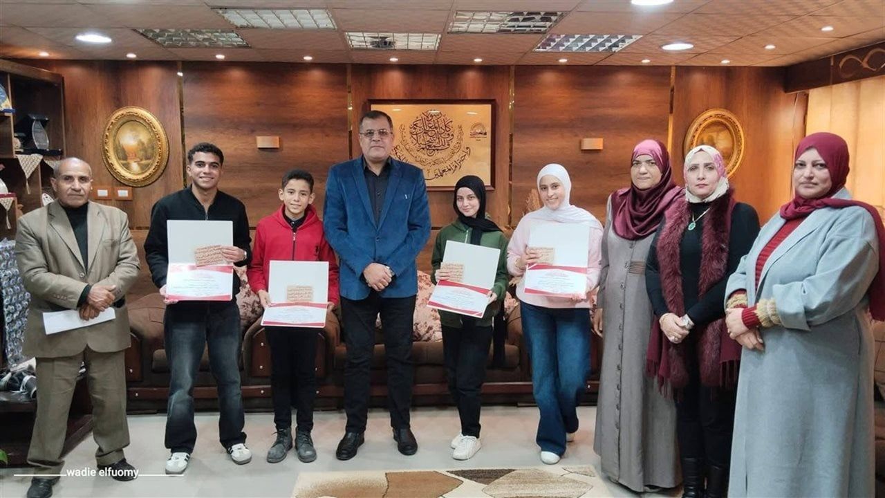 كرم ياسر عمارة، وكيل وزارة التربية والتعليم دمياط، اليوم، الطلاب الحاصلين على مراكز متقدمة في مسابقة "الملتقى الفكري" للمرحلتين الإعدادية والثانوية للعام الدراسي 2025 على مستوى الجمهورية في إطار دعم التميز الطلابي ورعاية الموهوبين.