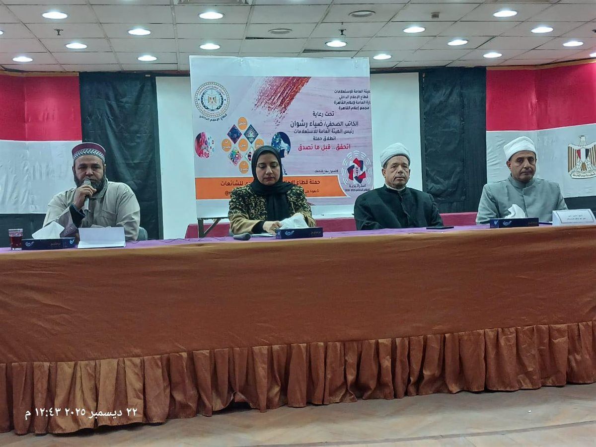 بدأ مجمع إعلام القاهرة تنظيم ندوة توعوية موسعة جاءت في إطار حملة تحقق قبل ما تصدق التي تبناها قطاع الإعلام الداخلي بهدف مواجهة الشائعات وتعزيز السلوك الإيجابي داخل المجتمع اعتمادا على خطاب ديني ووطني منضبط