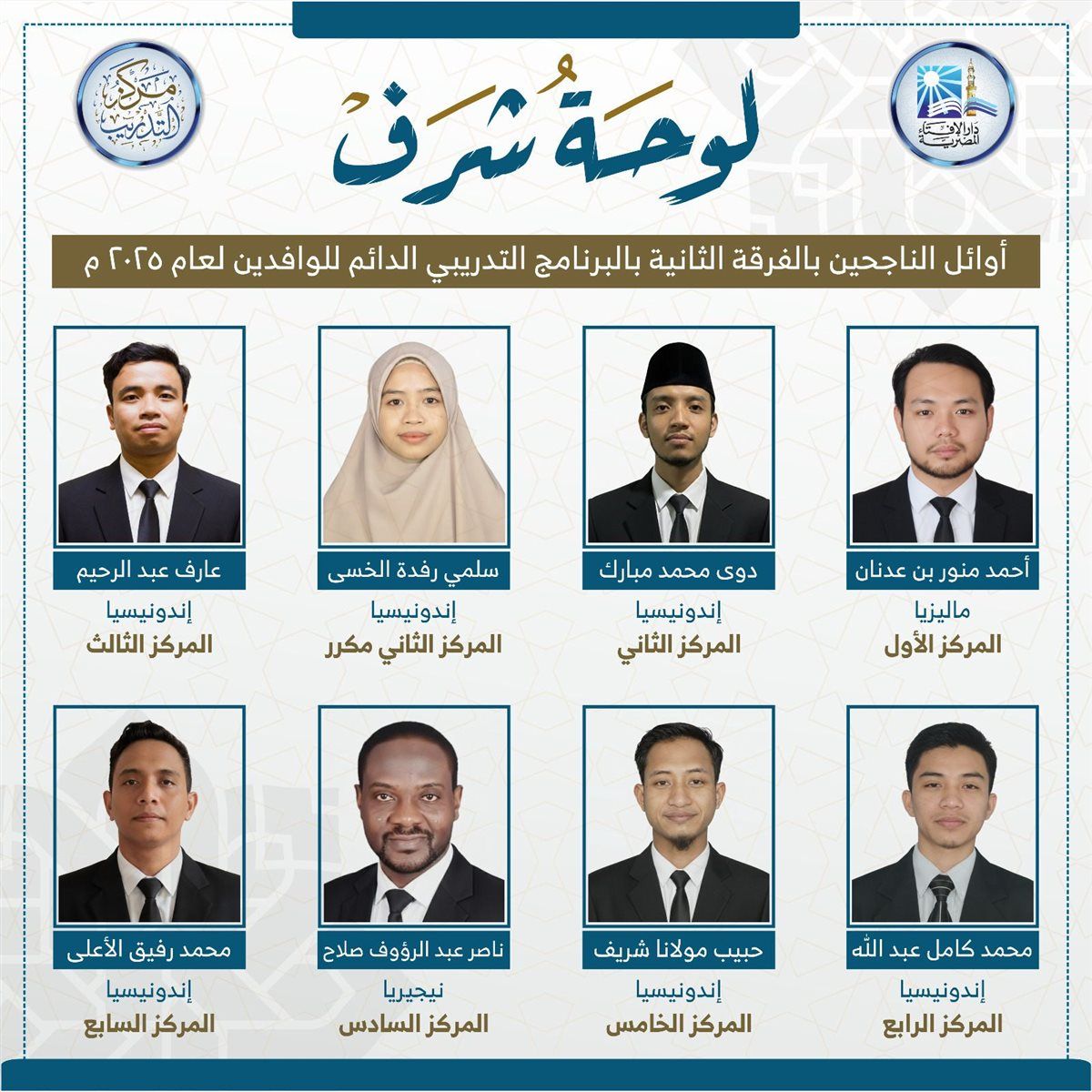أعلنت دار الإفتاء المصرية، من خلال مركز التدريب التابع لها، عن اعتماد نتائج امتحانات الفرقة الثانية للبرنامج التدريبي الدائم للوافدين لعام 2025.