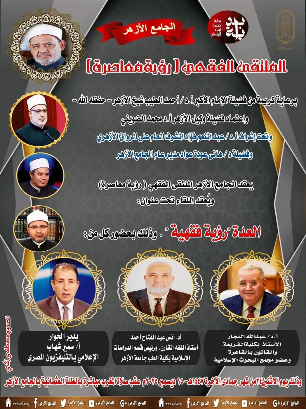 وأكد الدكتور عبد المنعم فؤاد، المشرف العام على الأروقة الأزهرية، أن الملتقى يُعدّ منصة هامة لتوضيح الصلة الوثيقة بين الطب والشرع في شتى مناحي الحياة، ويعكس جهود الأزهر في تقديم حلول متكاملة تتماشى مع الدين الإسلامي وتحديات العصر، مبيناً أن أحكام العدة في الإسلام تحمل مقاصد عليا تتجاوز مجرد استبراء الرحم، لتشمل إعلاء قيمة عقد الزواج وحفظ كرامة المرأة، مشيراً إلى أن مدة العدة تختلف باختلاف حالة المرأة، فالمطلقة تنتظر ثلاثة قروء، بينما تعتد الأرملة أربعة أشهر وعشرة أيام، والحامل تنتهي عدتها بوضع الحمل.
