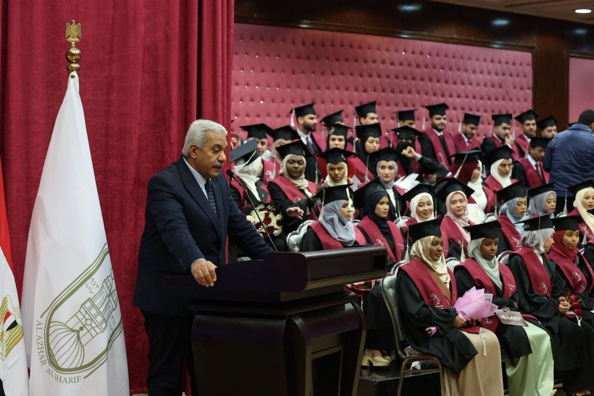 واختتم نائب رئيس جامعة الأزهر للدراسات العليا، كلمته بأن هذا الحفل يعكس رسالة الأزهر العميقة في تقديم تعليم متكامل يجمع بين العلم والمعرفة والقيم الإنسانية الأصيلة، ويعد الخريجين لتحمل مسؤولياتهم في خدمة المجتمع البشري بكل كفاءة وأخلاق.