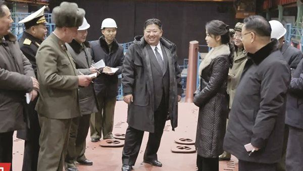 ولم تحدد وكالة الأنباء الكورية الشمالية موعد زيارة «كيم» إلى حوض بناء السفن، لكنها نشرت صوراً تظهره وهو يتفقد سفينة ضخمة مطلية باللون الخمرى، ويبدو أنها مطلية بطبقة مضادة للتآكل، داخل قاعة تجميع كبيرة، بحضور كبار المسئولين وابنته. وتعد هذه المرة الأولى التى تنشر فيها وسائل الإعلام الرسمية صوراً تظهر كامل هيكل الغواصة منذ مارس الماضى، بينما كانت الصور السابقة تركز على الأجزاء السفلية فقط.