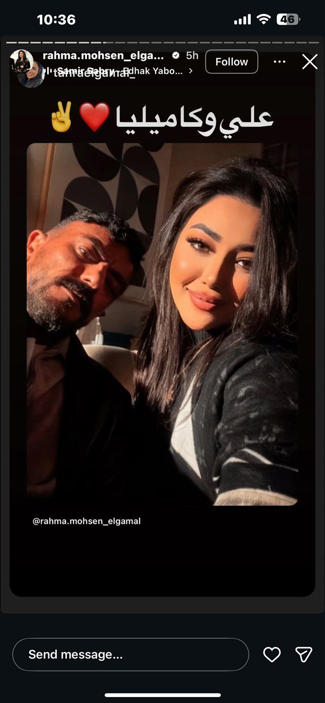 في أول تعليق لها بعد القبض على طليقها، نشرت المطربة رحمة محسن صورتها مع الفنان أحمد العوضي عبر ستوري حسابها الشخصي بموقع تبادل الصور والفيديوهات “انستجرام”.
