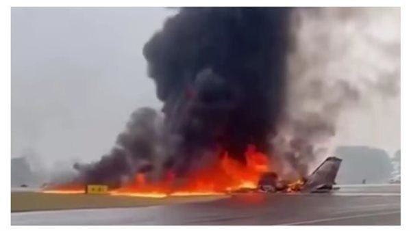 وتداولت وسائل التواصل الاجتماعي، مشاهد تظهر انتشار حطام الطائرة المشتعل على مدرج المطار وسط استنفار فرق الإغاثة التي هرعت لإخماد الحريق وإنقاذ الناجين المحتملين.