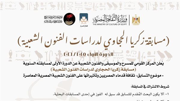 أعلن المركز القومي للمسرح والموسيقى والفنون الشعبية عن انطلاق الدورة الأولى من "مسابقة زكريا الحجاوي لدراسات الفنون الشعبية"، والتي تهدف إلى دعم الباحثين في مجال الفنون الشعبية وتشجيع الدراسات العلمية الجادة التي تسلط الضوء على الجذور الثقافية للمجتمع المصري وتبرز امتداداتها في الحاضر.