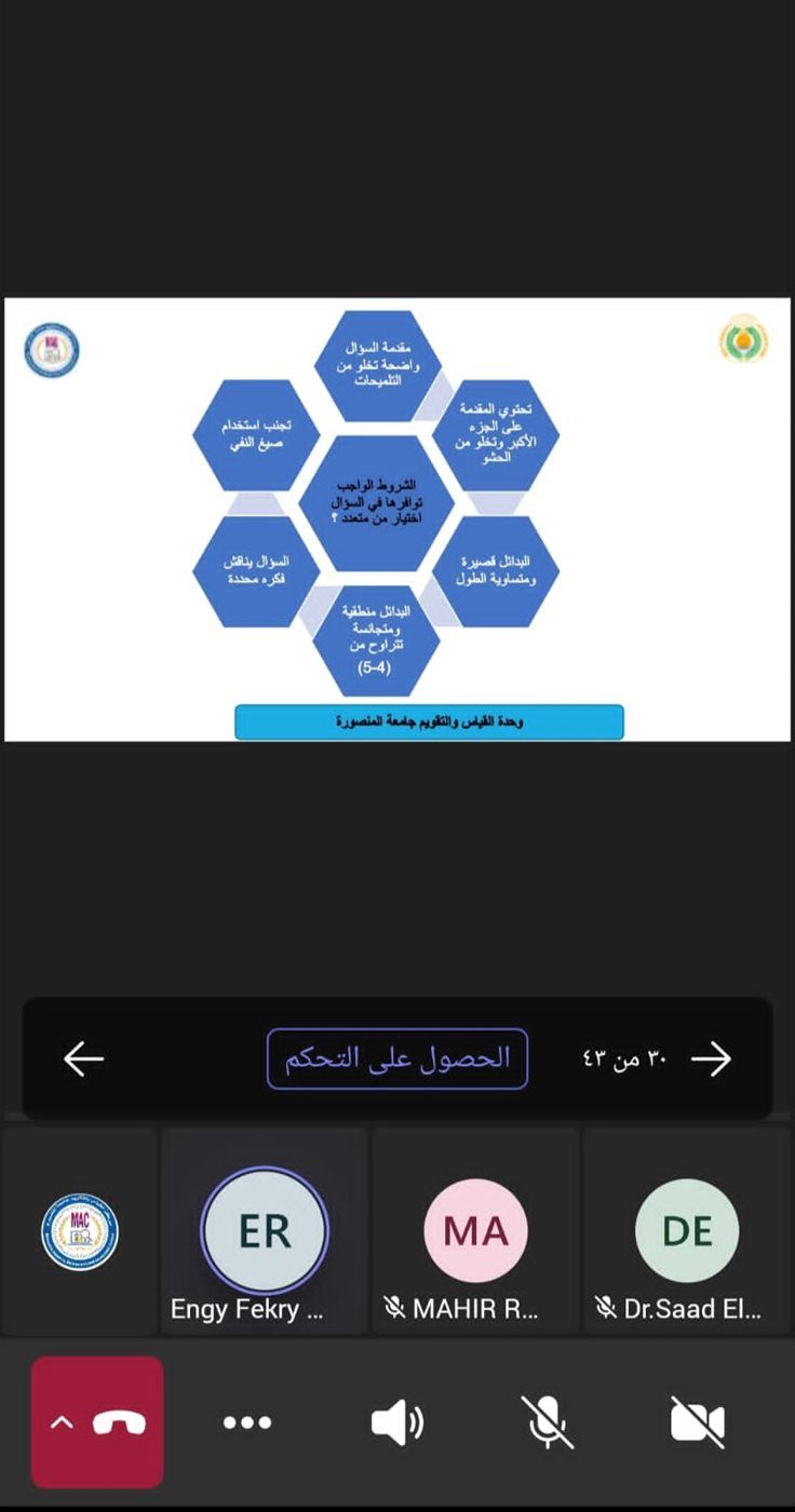 نظم مركز القياس والتقويم بجامعة المنصورة دورة تدريبية بعنوان "المفردة الاختبارية" عبر منصة التعليم عن بُعد بجامعة المنصورة.