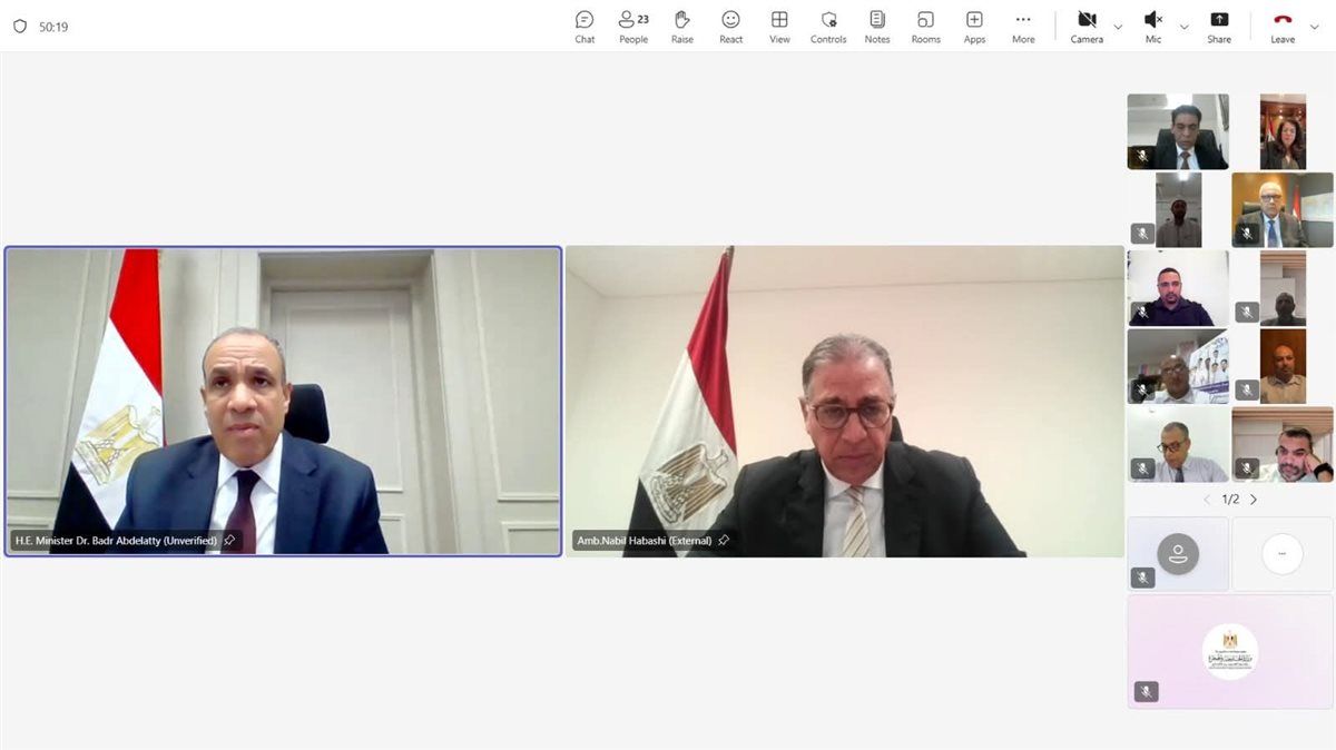 التقى د. بدر عبد العاطي وزير الخارجية والهجرة وشئون المصريين بالخارج فى لقاء افتراضى مع الجالية المصرية في كمبوديا وسنغافورا وتايلاند يوم الأحد ٢١ ديسمبر، وذلك في إطار سلسلة اللقاءات التي يعقدها وزير الخارجية مع الجاليات المصرية بالخارج، وهى لقاءات تأتى فى إطار جهود وزارة الخارجية لتعزيز التواصل وبناء الجسور بين أبناء مصر في الخارج والوطن.