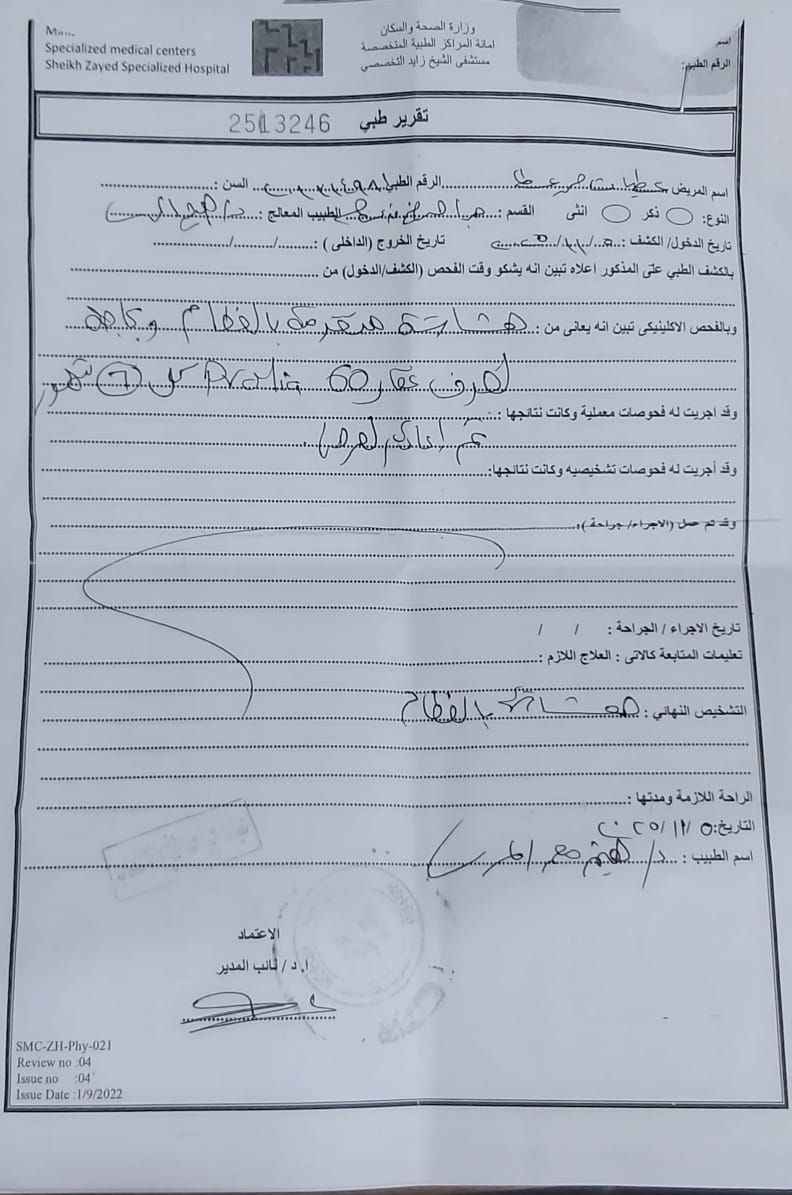 الرئيسية أخبار العالم الوفد منذ ساعتين — الأحد — 21 / ديسمبر / 2025 نداء إلى وزير الصحة الوفد منذ ساعتين 0 تعليق ارسل طباعة تبليغ حذف نداء إلى وزير الصحة إنشر على الفيسبوك إنشر على تويتر ناشدت المواطنة عطيات محمد عطا علي، والمقيمة بمحافظة أسوان، الدكتور خالد عبدالغفار وزير الصحة والسكان، بسرعة التدخل وصرف العلاج الخاص بها على نفقة الدولة. وأكدت أنها غير قادرة على شراء العلاج لأنها تتقاضى معاش شهري 1200 جنيهًا فقط مرفق التقرير الطبي إخترنا لك ريال مدريد يضرب إشبيلية بثنائية في الدوري الإسباني السابق إسلام جمال يشارك فى فيلم "خطة على التراك" التالى أشرف زكي يكشف كواليس مشاركته فى فيلم "بكرا" أخبار ذات صلة بوميل: الاحصائيات التاريخية لا تهمني قبل مواجهة جنوب افريقياأخبار العالممنذ 3 دقائق برشلونة يفوز على فياريال ويحافظ على صدارة الليجاأخبار العالممنذ 3 دقائق وزير الثقافة: الخط العربي رسالة سلام وهوية.. ومصر ستظل الحاضنة الأصيلة لفن الحرفأخبار العالممنذ 3 دقائق كاف يعرض أجواء ملعب الأمير مولاي عبد الله بالرباط قبل افتتاح إفريقياأخبار العالممنذ 3 دقائق خبير تعليمي يكشف أبرز مشكلات طلاب مدارس المتفوقين STEMأخبار العالممنذ 3 دقائق استشاري تغذية: الألوان الحمراء في الحلوى ومستحضرات التجميل تحت مجهر السرطانأخبار العالممنذ 11 دقيقة 0 تعليق Facebook