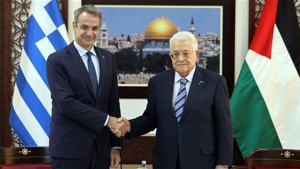 أجرى الرئيس الفلسطيني، محمود عباس، اليوم الاثنين، لقاءً بمقر الرئاسة الفلسطينية، في مدينة رام الله، مع رئيس وزراء اليونان كيرياكوس ميتسوتاكيس، والوفد المرافق له.