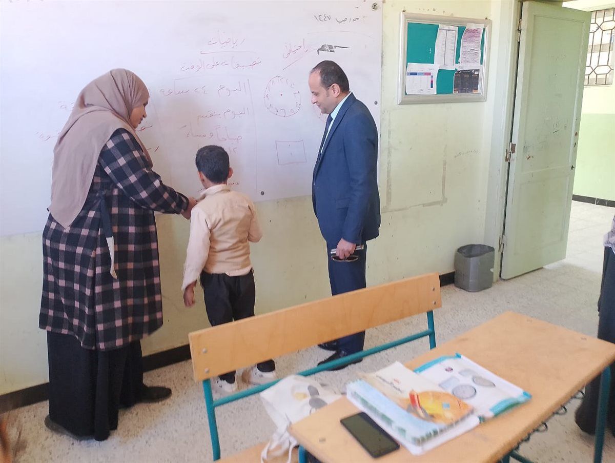 حيث قام بتفقد الفصول الدراسية، والتأكد من حضور جميع المعلمين إلى جانب الإهتمام بتسجيل الغياب اليومى وتحفيز الطلاب والتأكد من عمل التقييمات الأسبوعية ورصد الدرجات أولآ بأول فى السجلات المعده لذلك